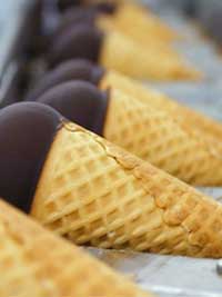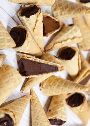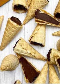 Cette solution permet de fabriquer des mini cônes de différentes tailles selon les besoins des utilisateurs, et peut également être fourrée de chocolat, de crème, etc.